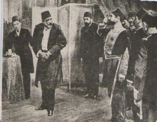 حكمت، وعضوية كل من أسعد طوتباني باشا وغالب باشا، ورئيس جالية يهود