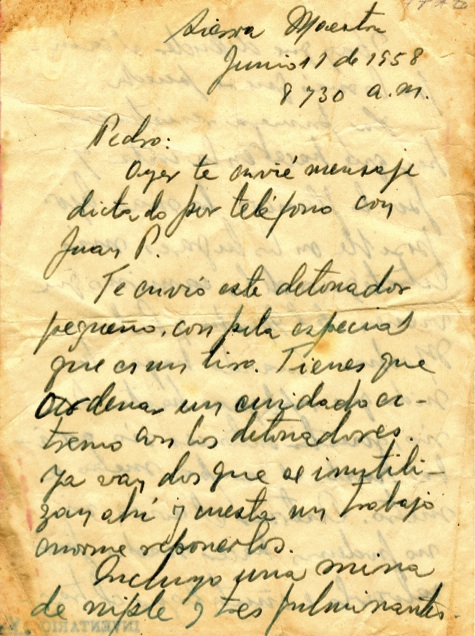 Carta de Fidel a José Quevedo, jefe del Batallón 18 del